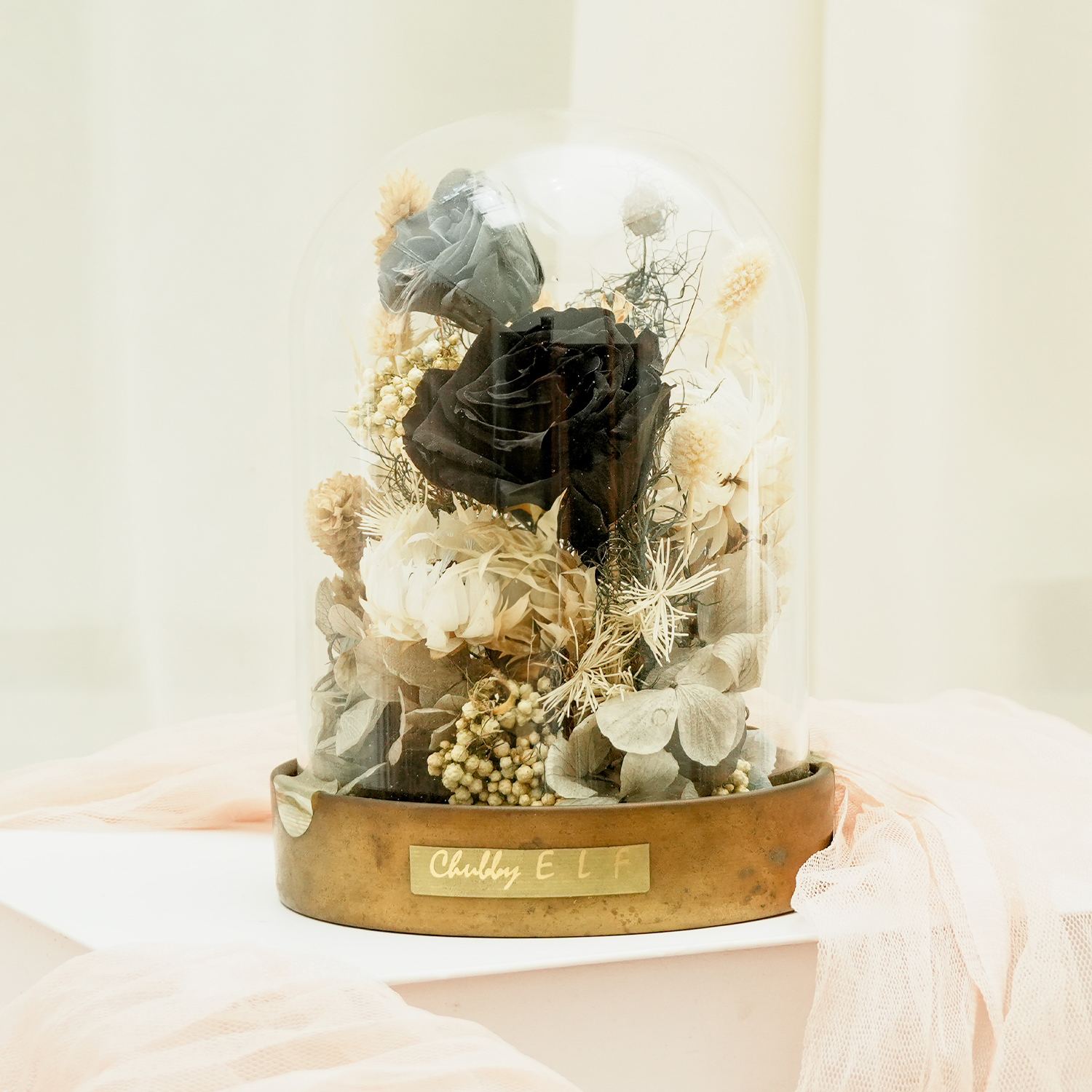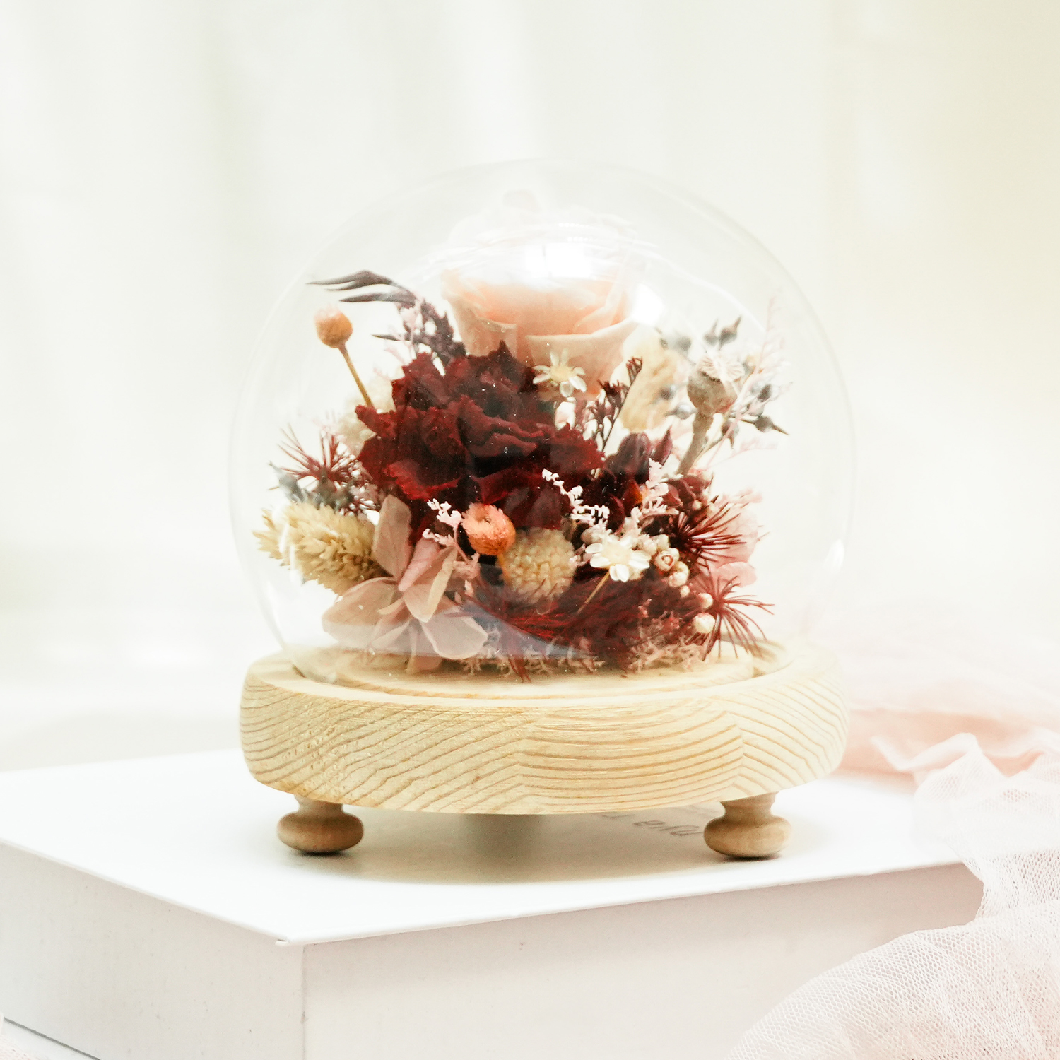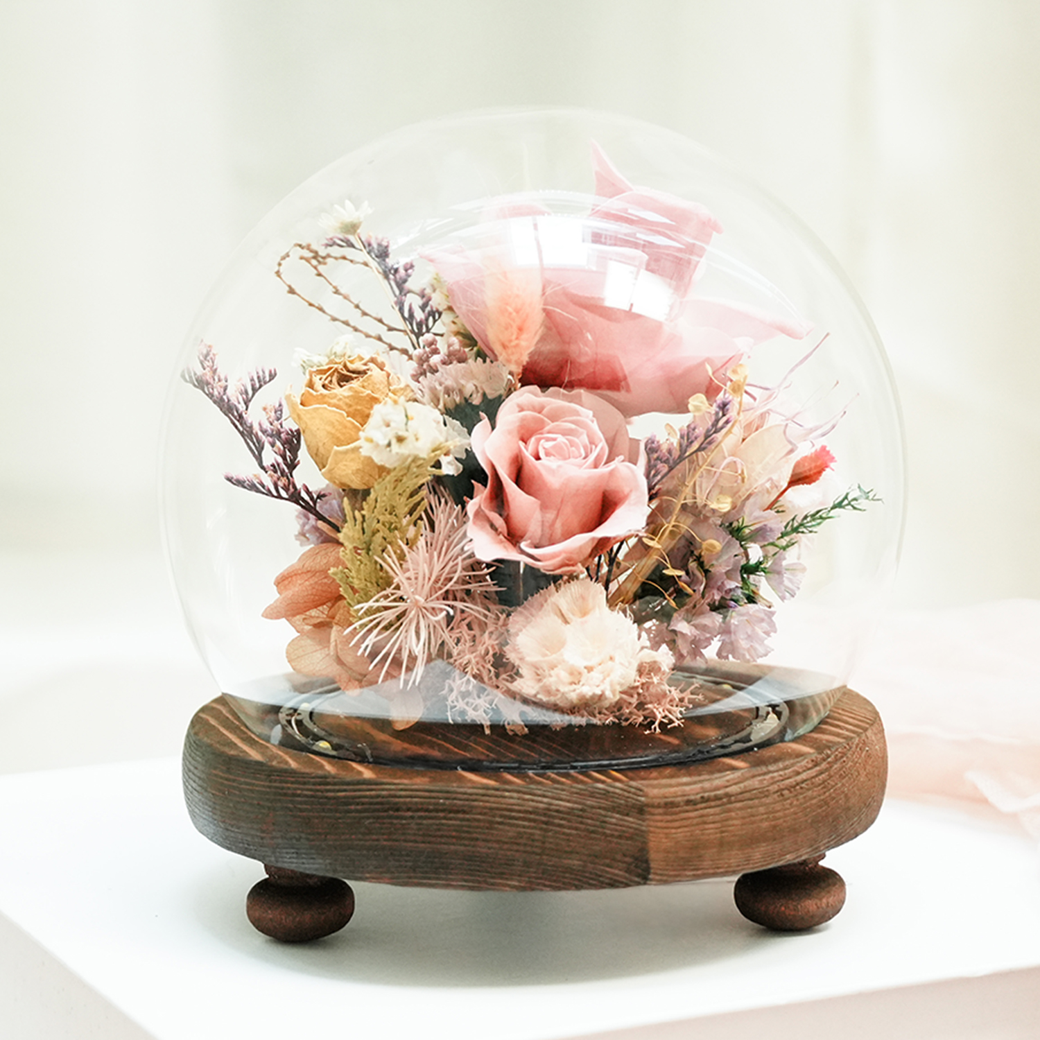 永生花星球盅罩 |S煙燻粉玫瑰現貨|