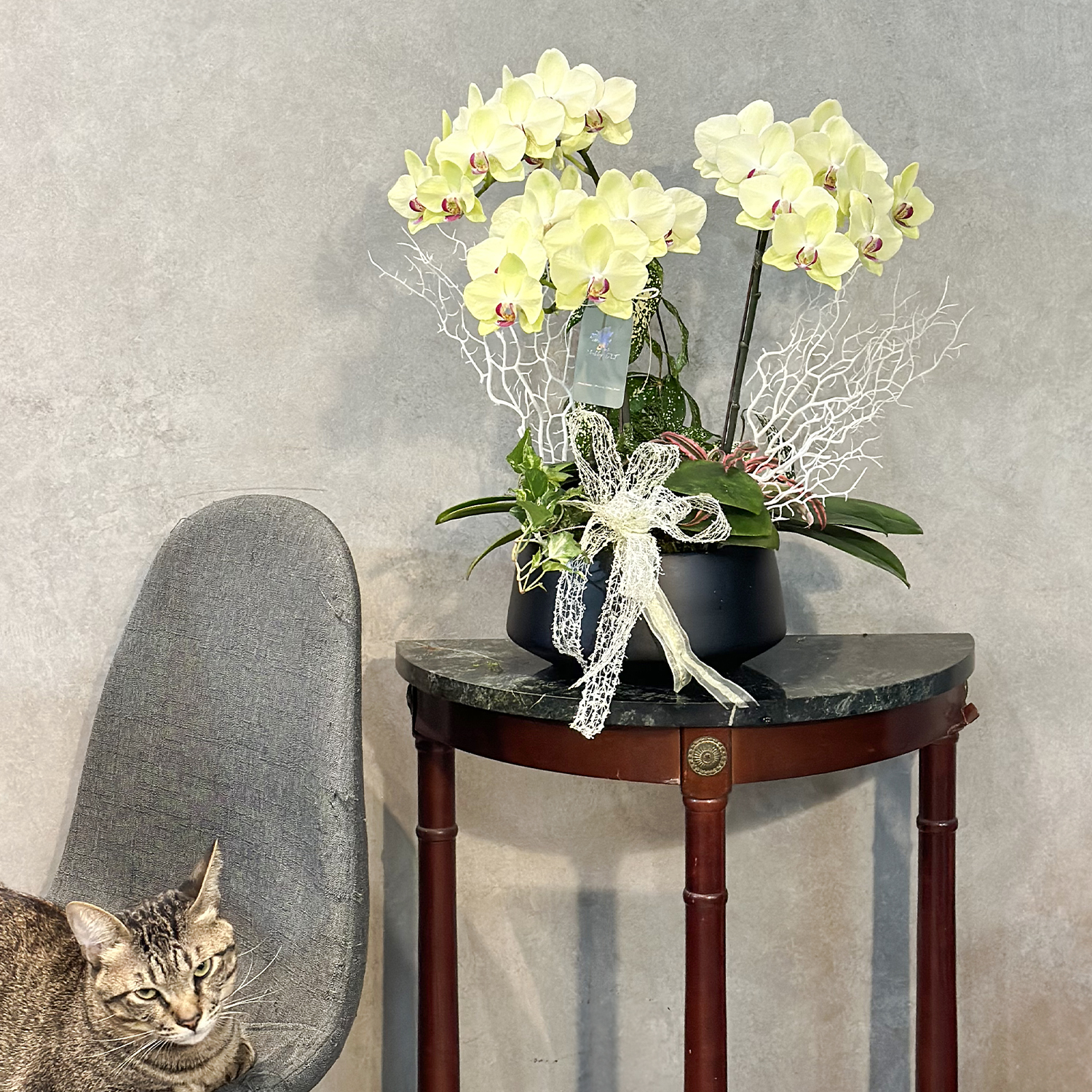 商品詳細資訊: 尺寸→ 約 30cm(長寬) x 50cm(高) 成分→ 新鮮蘭花、隨機盆器 商品備註: 1.實際顏色已實品為主 (可討論) 。 2.避免置放於陽光直射處、花材易枯萎。 3.作品說明:花材會依季節性變動,或是花材品質欠佳,若遇臨時狀況發生, 請允許花藝設計師以其他色系或相同的花材做調整,或電洽設計師討論。