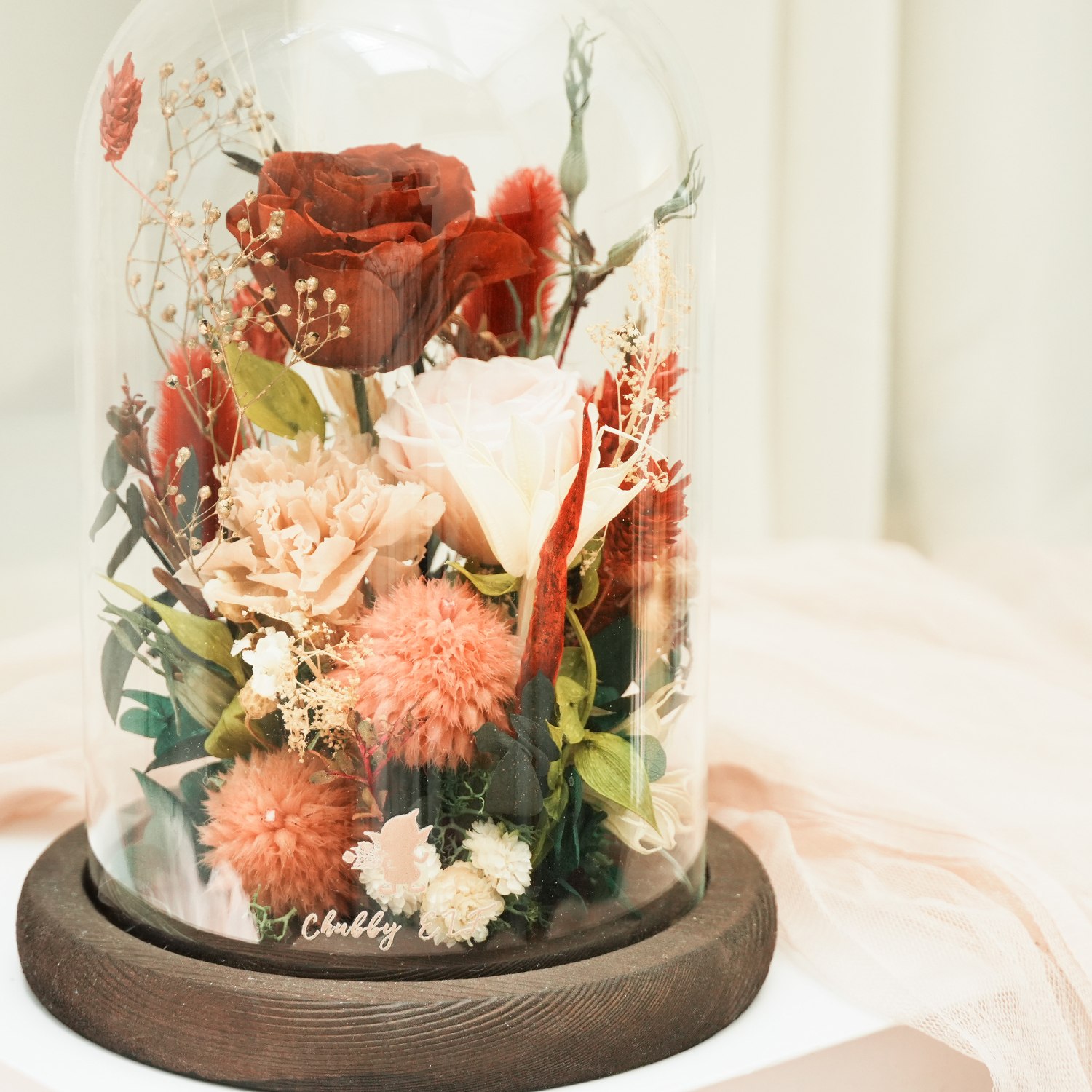 成分→  永生花材、乾燥花材、玻璃、金屬、LED燈