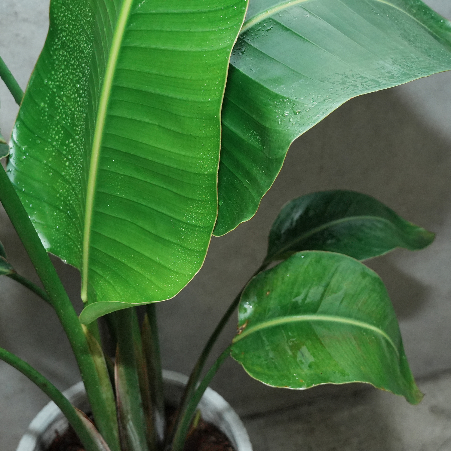 旅人蕉科天堂鳥是具有熱帶風情的觀賞植物,葉面翠綠油亮近年已經變成全國流行的盆栽,葉子像芭蕉扇一般,看起來就特別清新,養成室內盆栽,就變成了觀葉植物