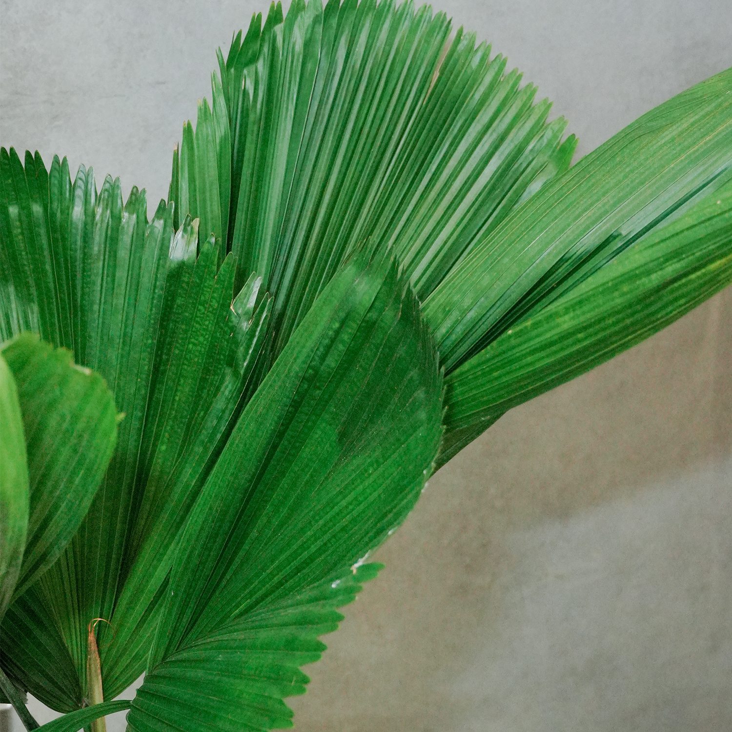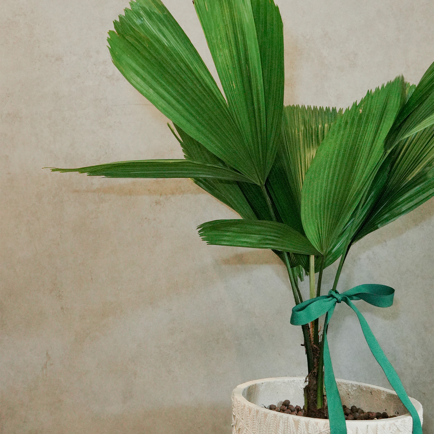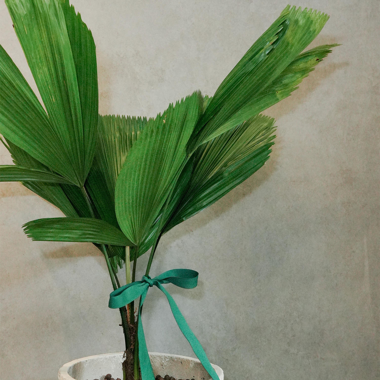 成分→ 水泥盆器、圓葉蒲葵、培養土