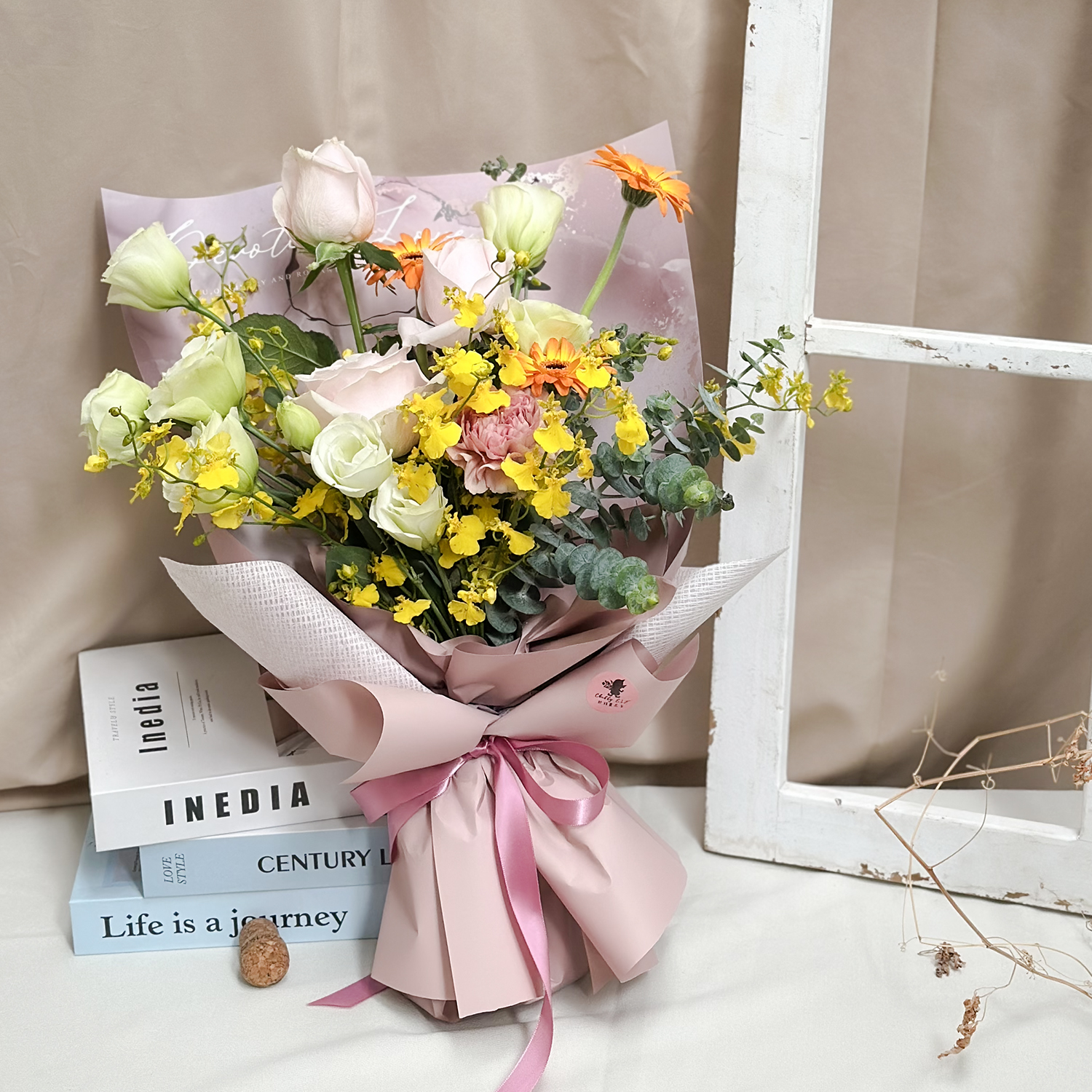 商品備註: 1.實際顏色已實品為主。 2.避免置放於陽光直射處、花材易枯萎。 3.作品說明:花材會依季節性變動,或是花材品質欠佳,若遇臨時狀況發生, 請允許花藝設計師以其他色系或相同的花材做調整,或電洽設計師討論。