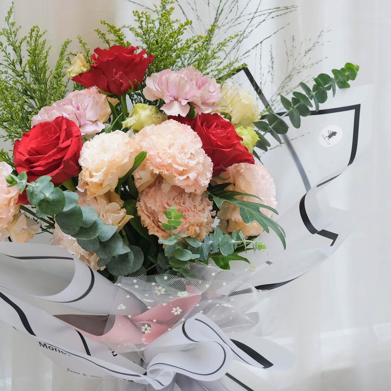 商品備註: 1.實際顏色已實品為主。 2.避免置放於陽光直射處、花材易枯萎。 3.作品說明:花材會依季節性變動,或是花材品質欠佳,若遇臨時狀況發生, 請允許花藝設計師以其他色系或相同的花材做調整,或電洽設計師討論。
