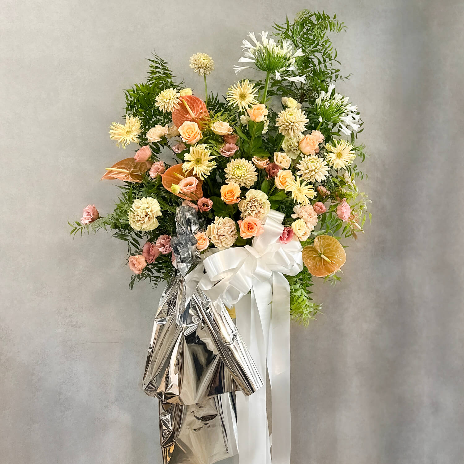 成分→ 鮮花高架花籃贈送的數目一支即象徵一盆花的意思即可表達致贈者的心意,