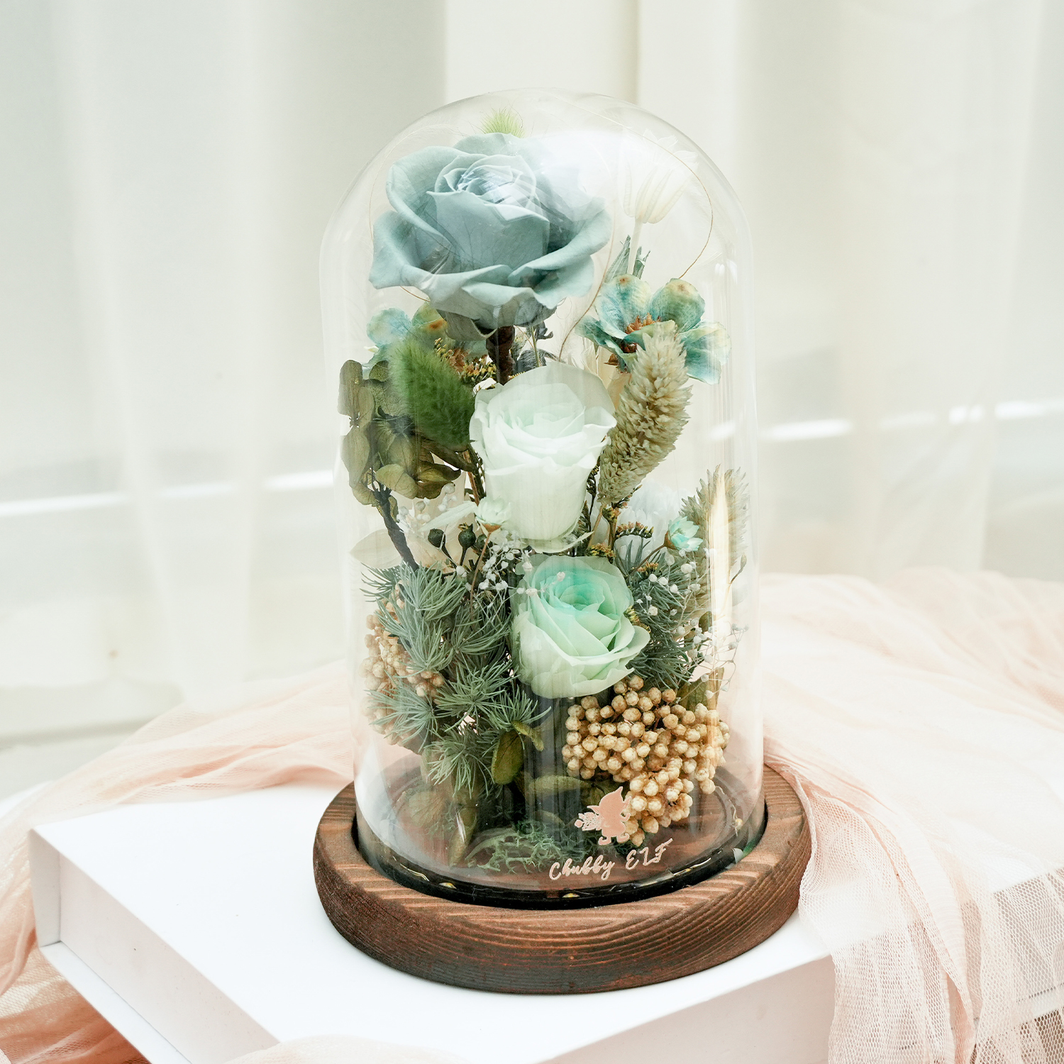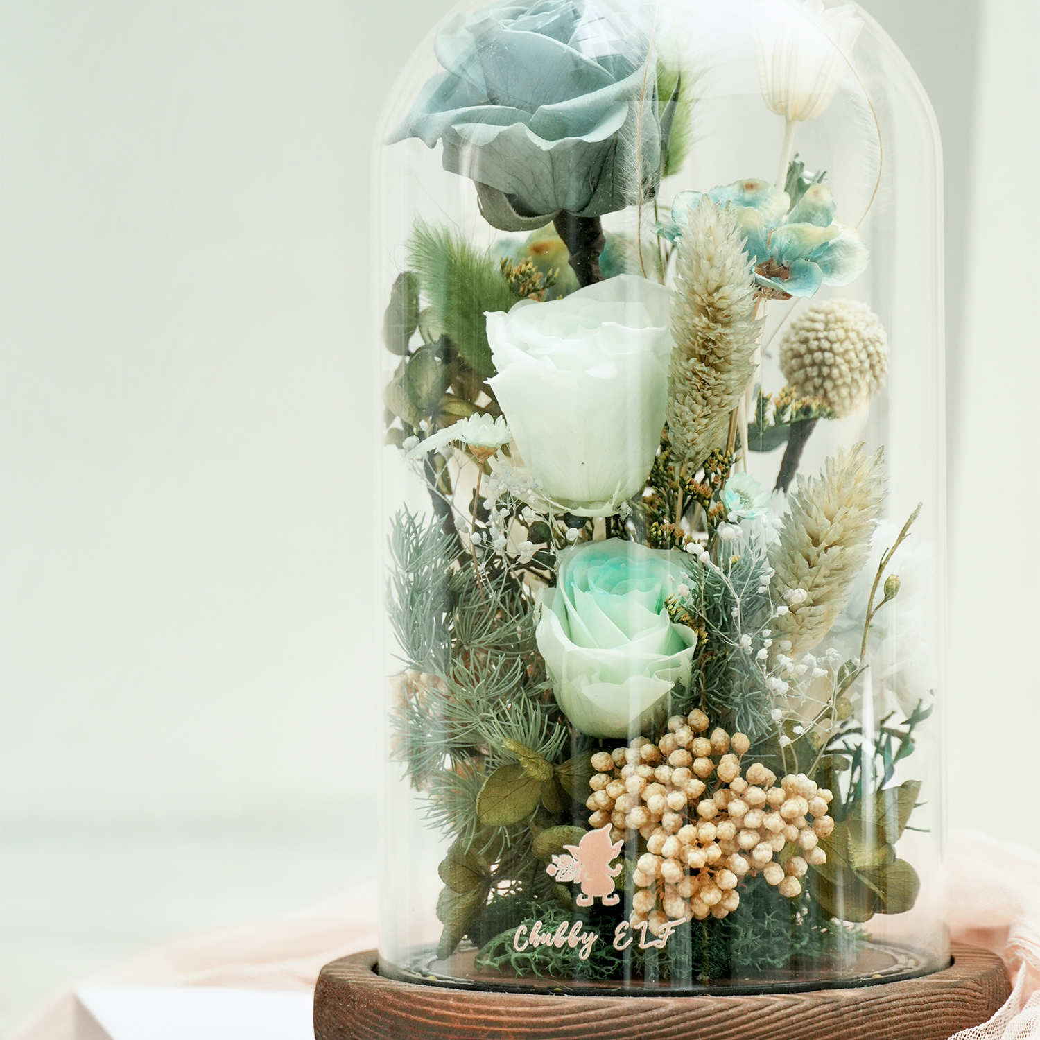 成分→ 永生花材、乾燥花材、玻璃、金屬、LED燈