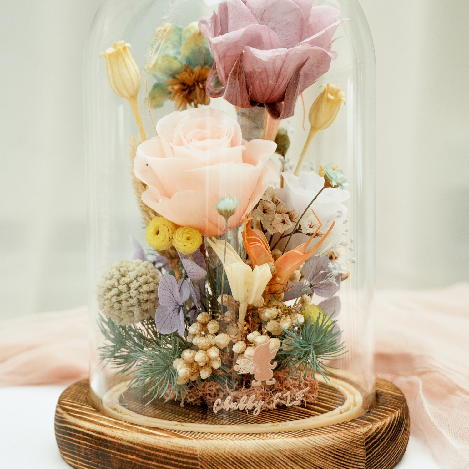 成分→  永生花材、乾燥花材、玻璃、金屬、LED燈