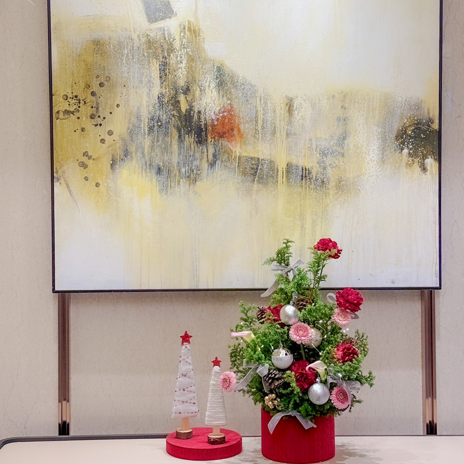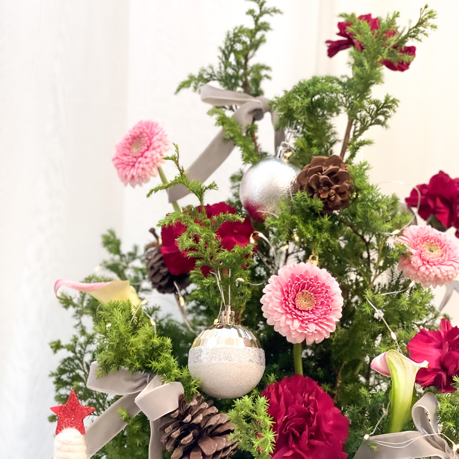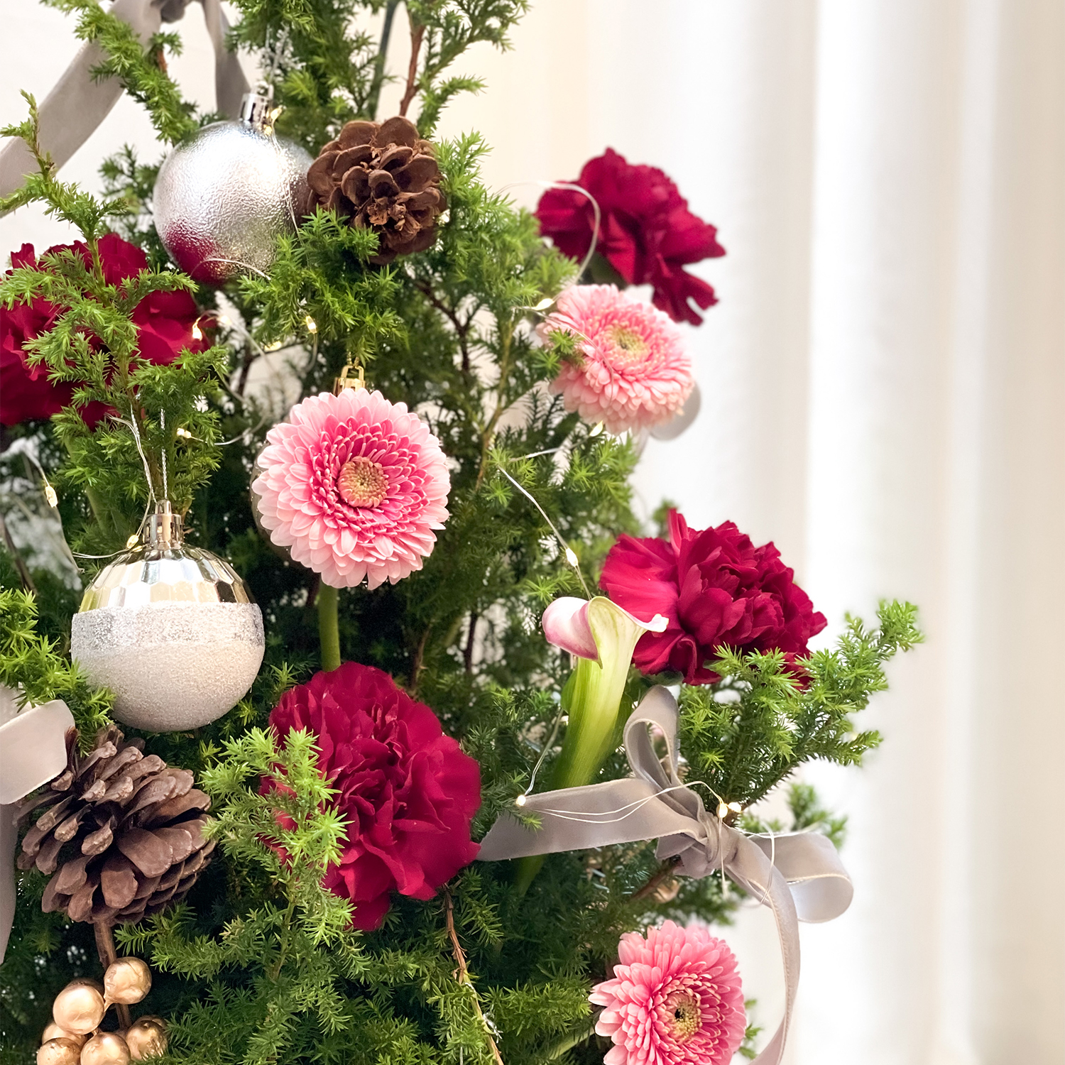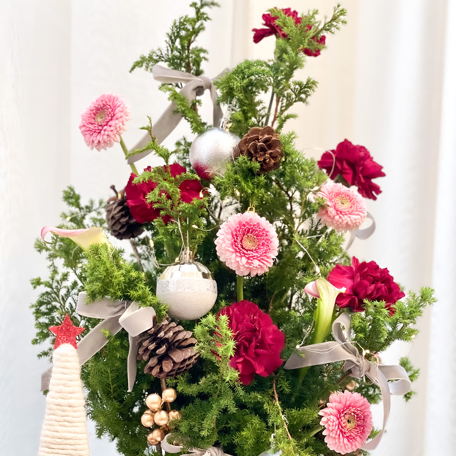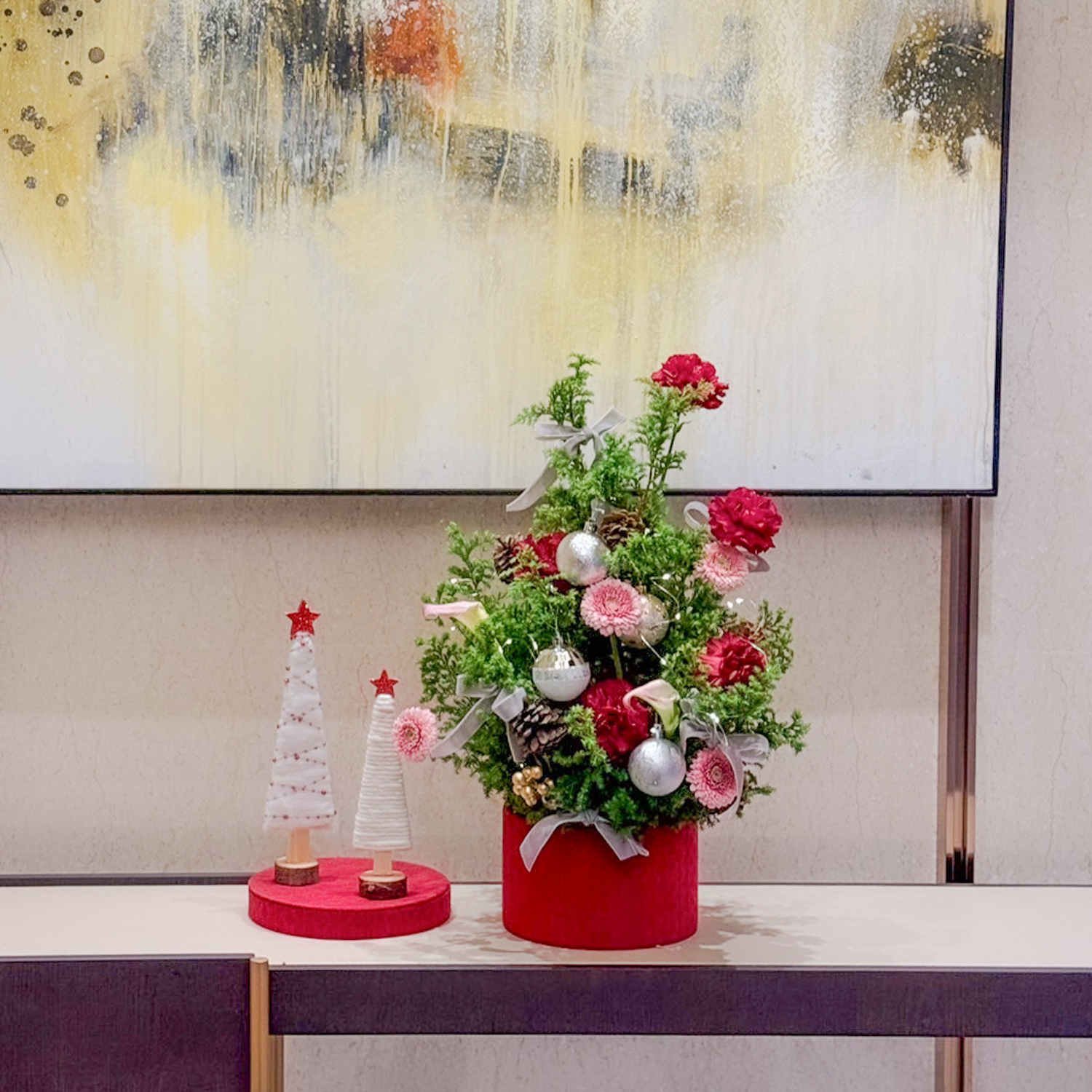 商品詳細資訊: 尺寸→ 約30x25cm(長寬) x 約50cm(高) 成分→ 雪松、康乃馨、太陽花、新鮮葉材、禮盒、吸水海綿 商品備註: 1.實際顏色已實品為主。 2.避免置放於陽光直射處、花材易枯萎。