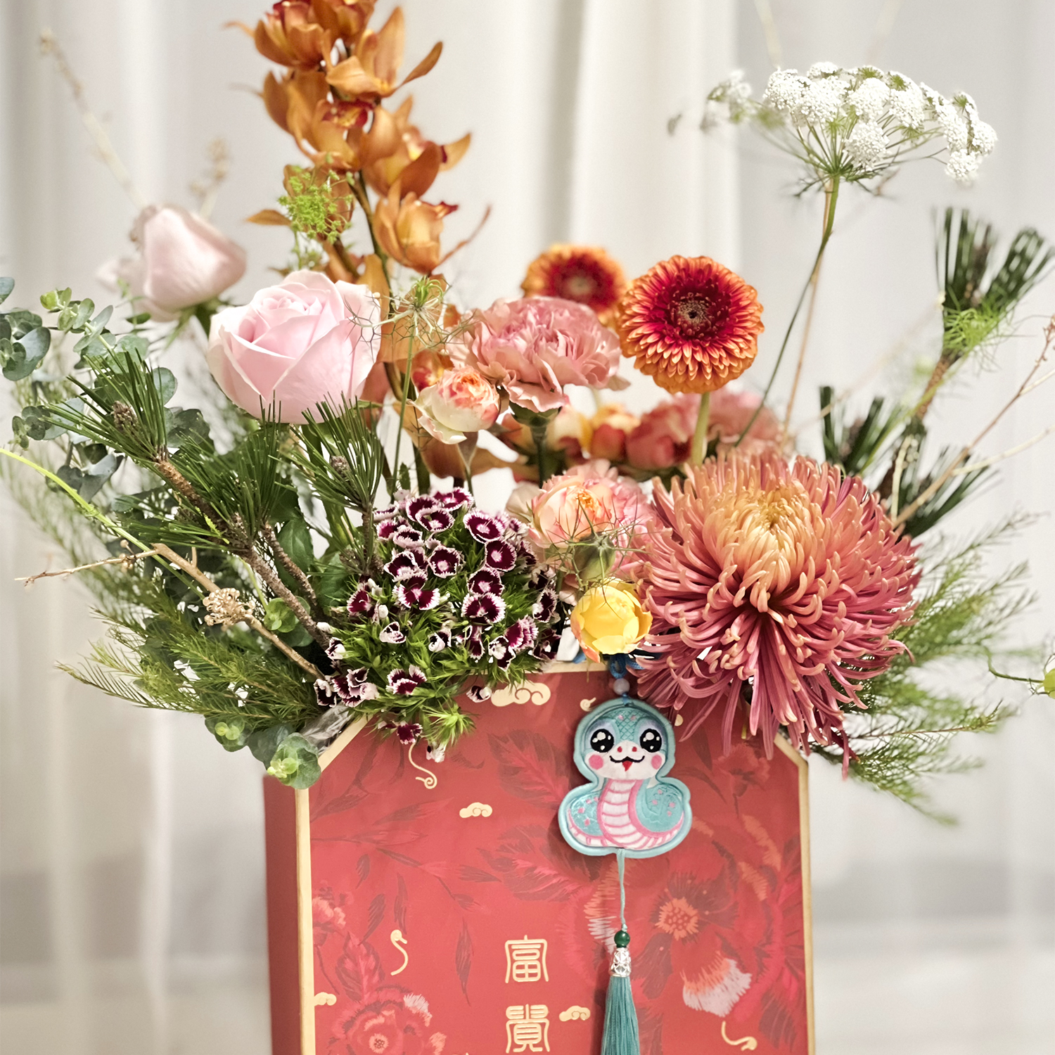 請允許花藝設計師以其他色系或相同的花材做調整,或電洽設計師討論。
