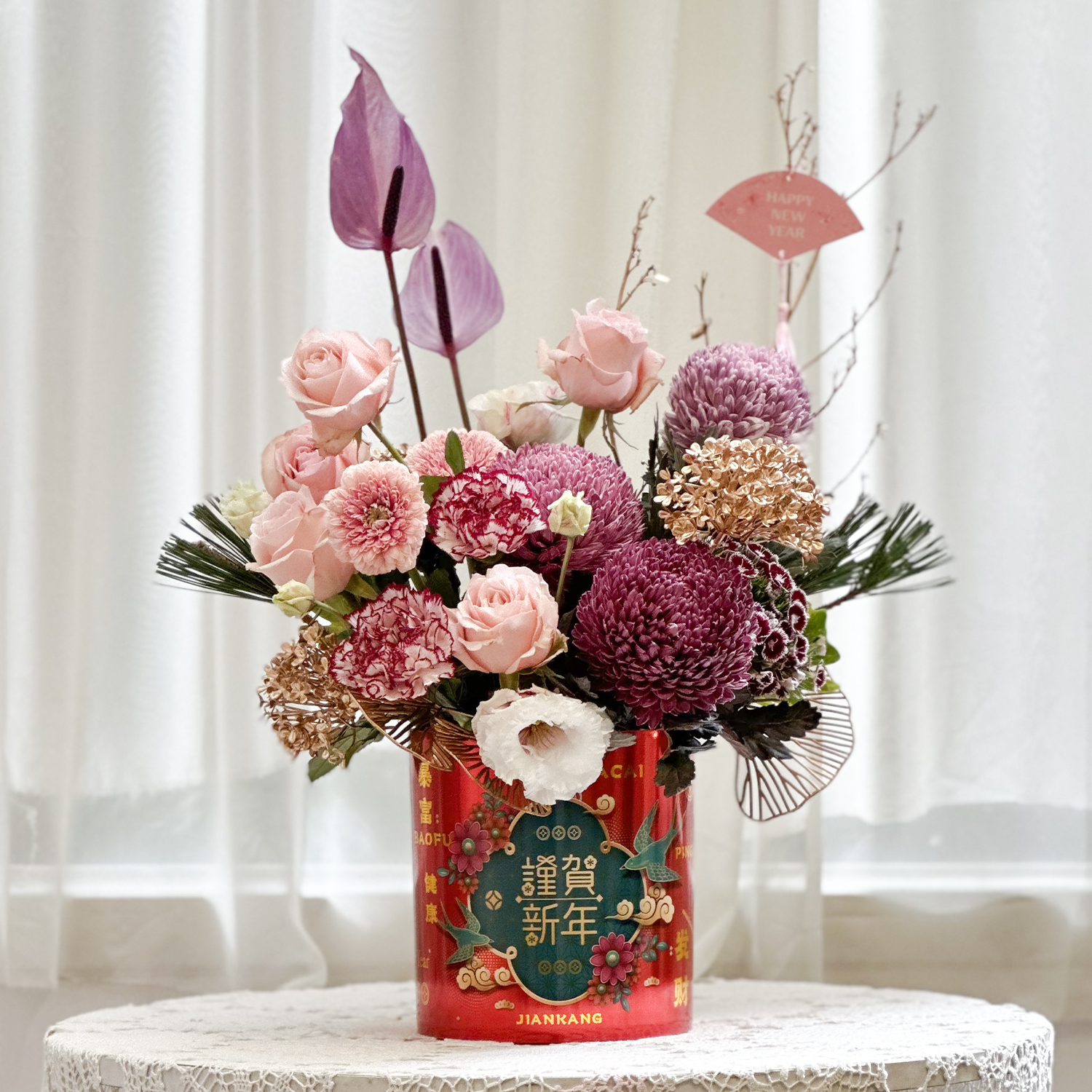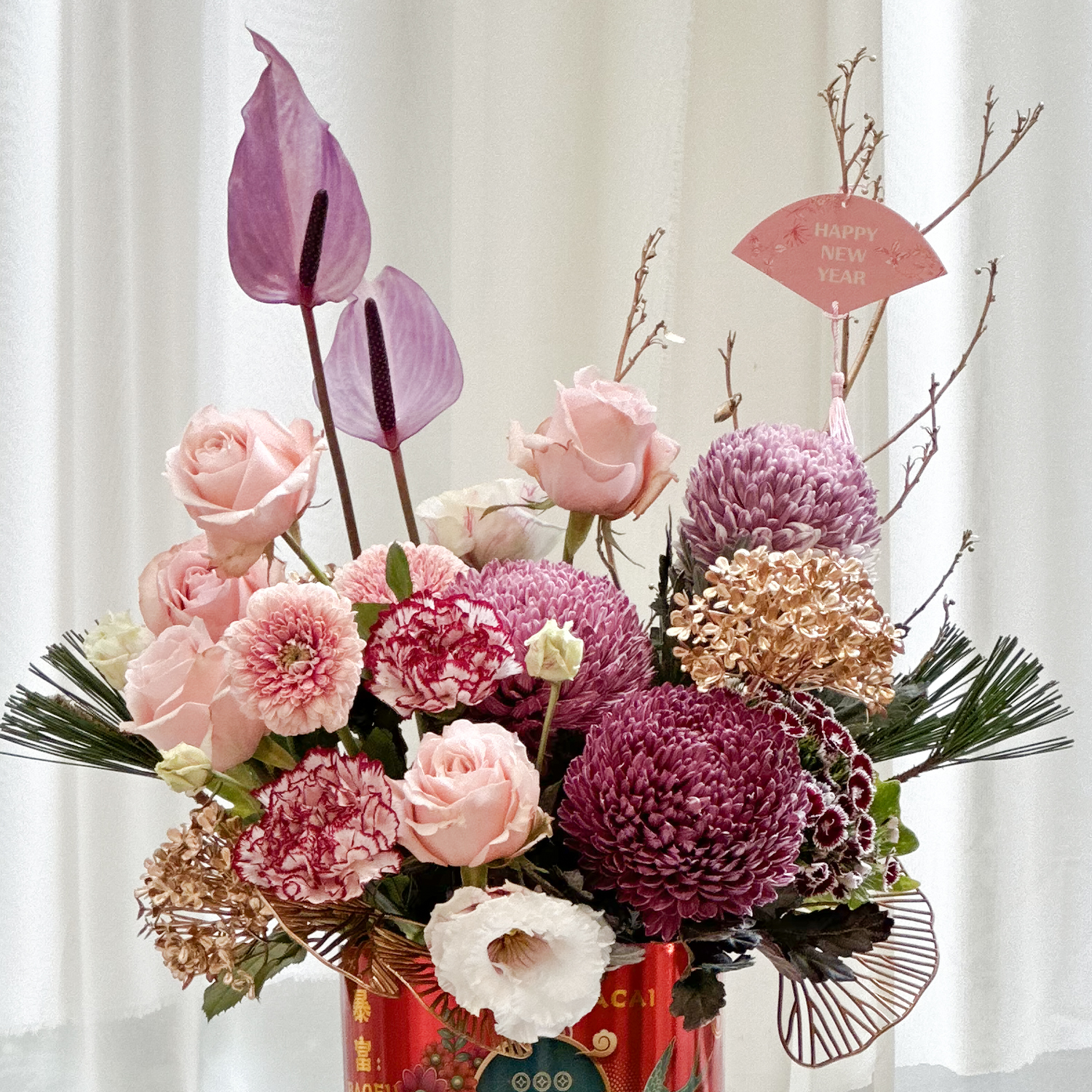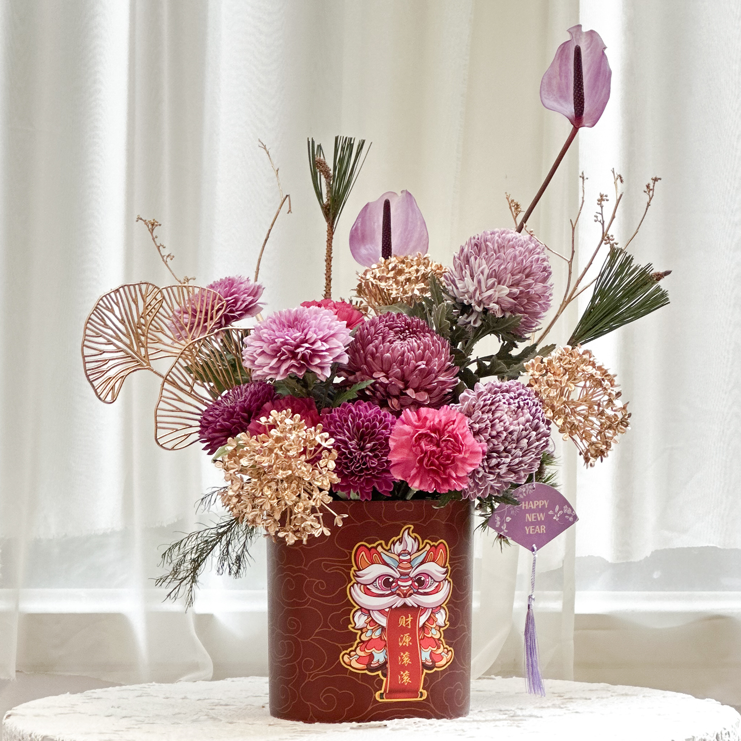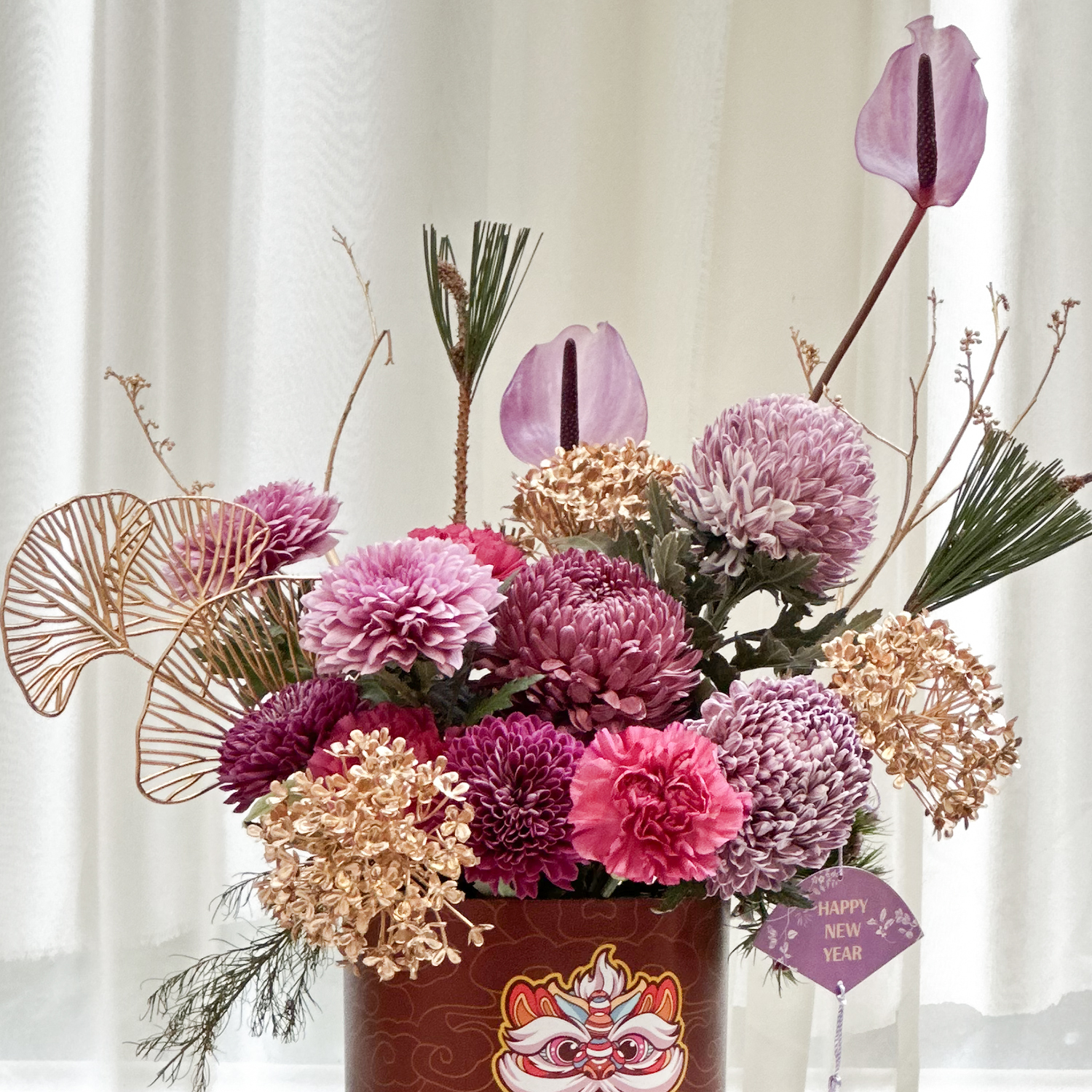 訂購 商品詳細資訊: 尺寸→ 約30x20cm(長寬) x 約40cm(高) 成分→ 新鮮花材、新鮮葉材、提籃、吸水海綿 虎頭蘭、綠石竹、康乃馨、玫瑰、牡丹菊、太陽花 商品備註: 1.實際顏色已實品為主。 2.避免置放於陽光直射處、花材易枯萎。 3.作品 說明:花材會依季節性變動,或是花材品質欠佳,若遇臨時狀況發生, 請允許花藝設計師以其他色系或相同的花材做調整,或電洽設計師討論。