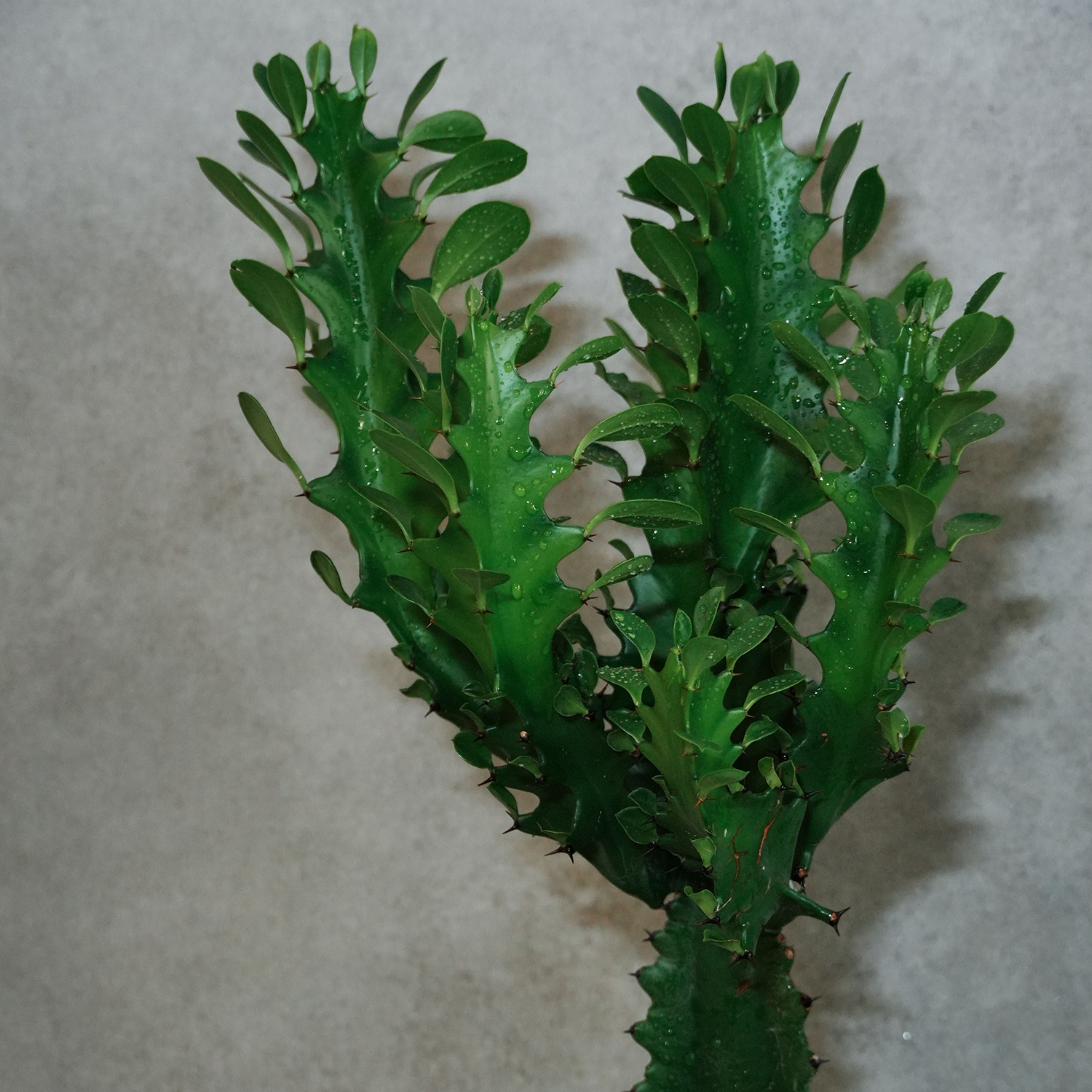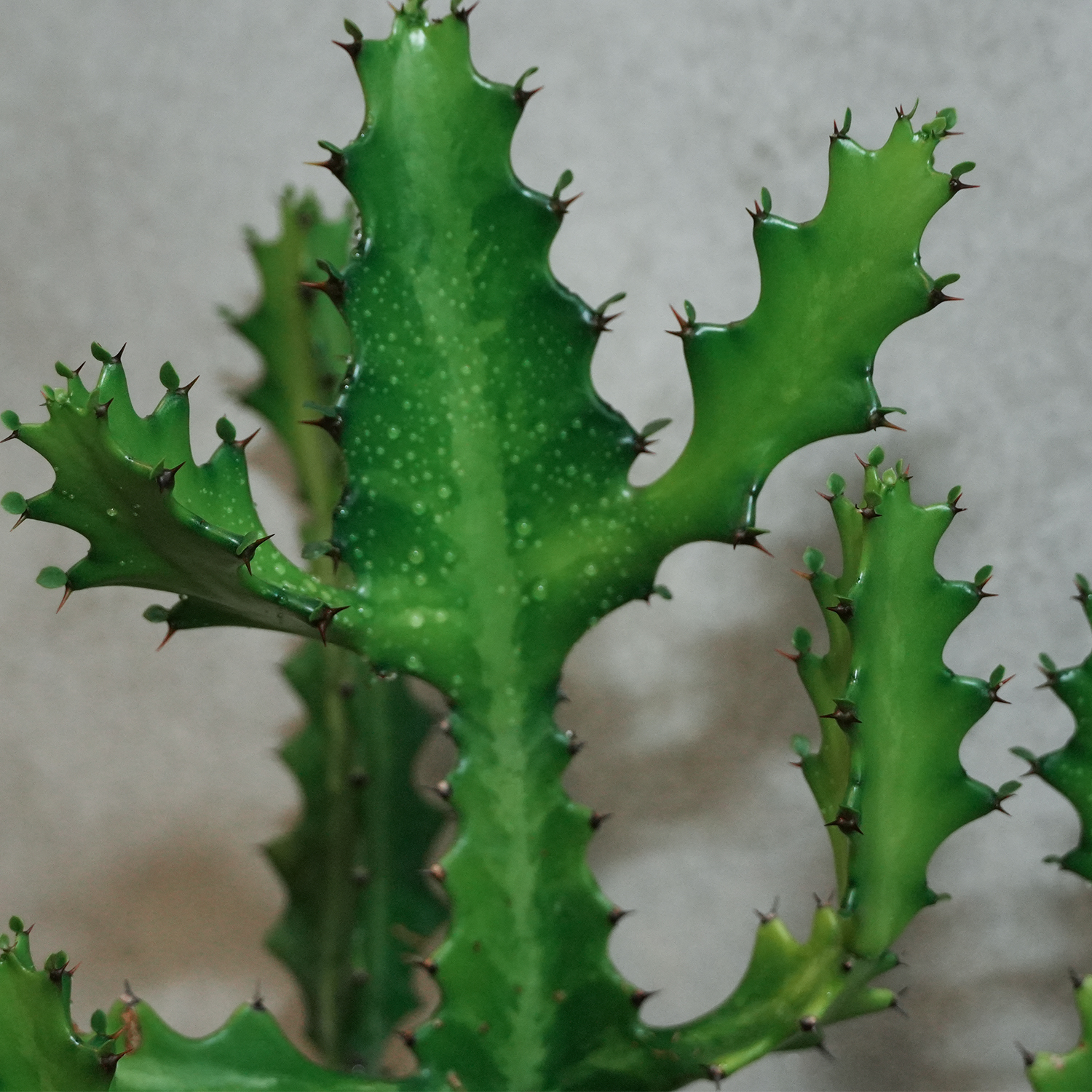 學名:龍骨(學名:Euphorbia trigona)是常見的大戟科多肉植物,又稱三角霸王鞭或彩雲閣。其特徵為堅硬直立的三稜柱狀莖,帶有小刺,外型類似仙人掌但無葉片(成株通常),高可 達 2-4 公尺,適合全日照環境,耐旱且易於養護,常做為室內觀賞、盆栽或戶外庭院的綠色屏障。